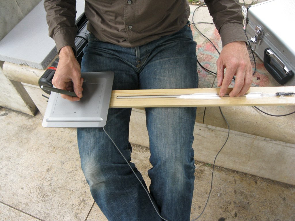 Les trois premières Annotations prennent pour cadre le site Bercy–Bibliothèque François Mitterand à l’est de Paris. Les Annotations 1 et 3 se sont déroulées sur le parvis de la BNF. Equipement: Ordinateur, sampler virtuel, tablette graphique, ruban capteur de position et ampli portatif